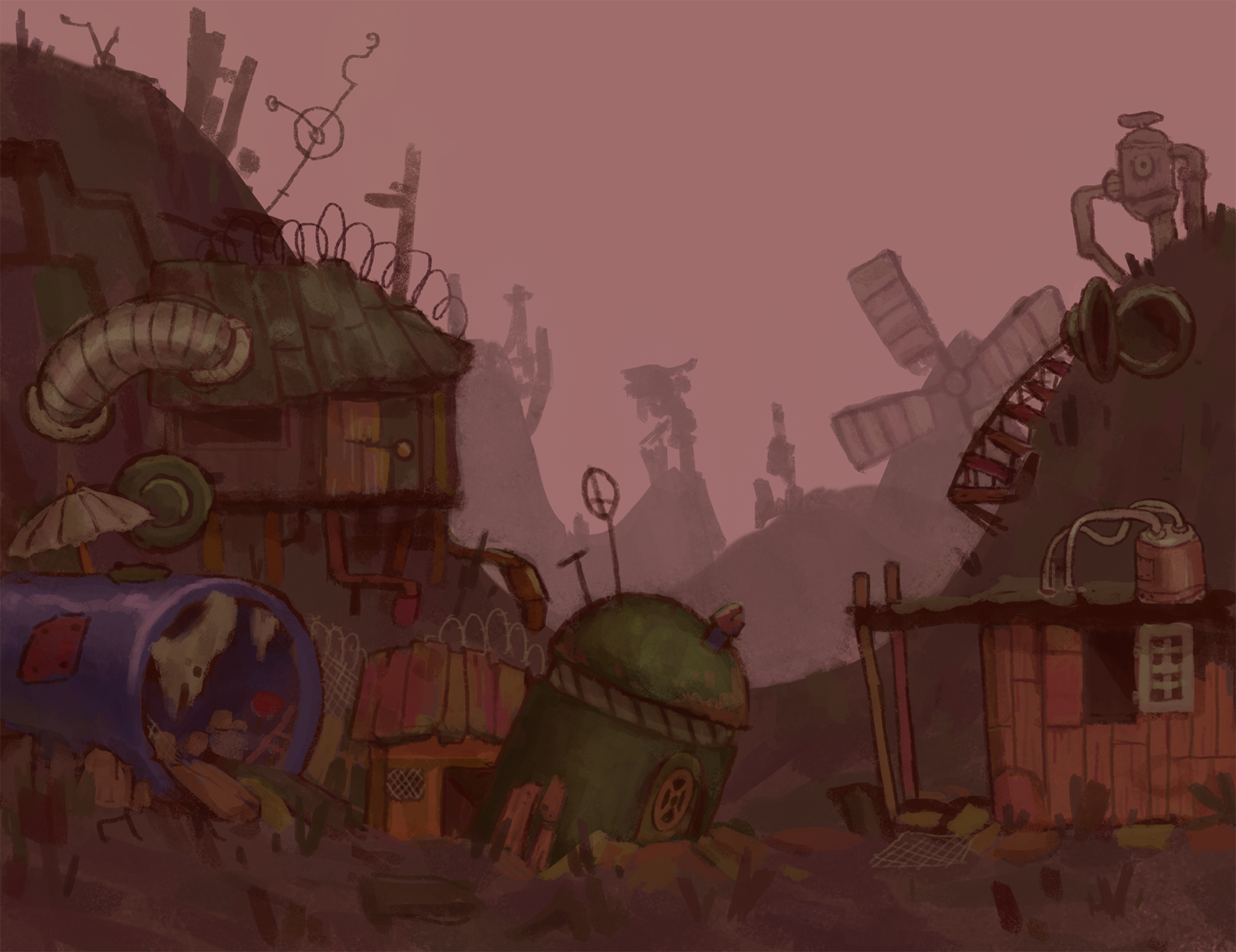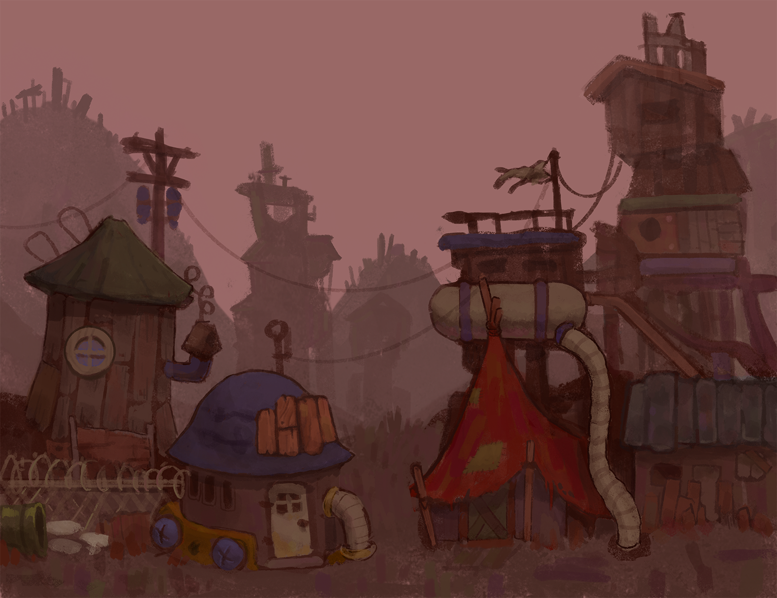 Concept art for Gunbrella, developed by Doinksoft and published by Devolver Digital in 2023. I was tasked with brainstorming and illustrating characters that would fit in the game’s unique gritty setting. I also did visual development sketches to flesh out a few locations in the game.